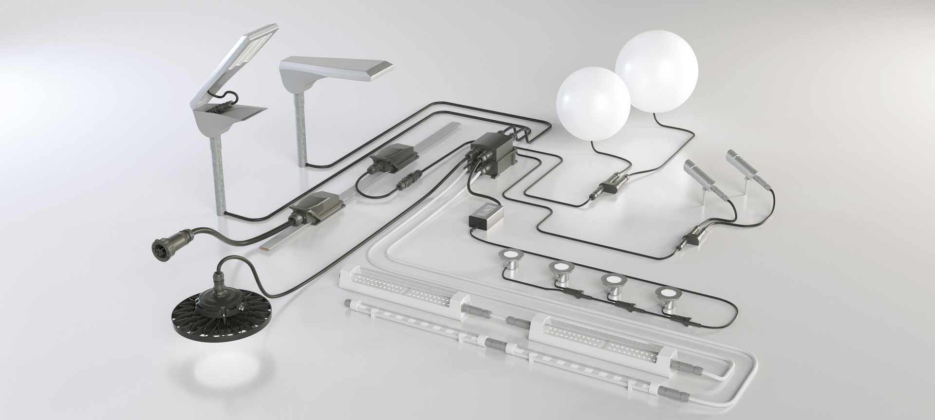 Efficienti installazioni per l’illuminazione decorativa all’esterno: semplice regolazione dell’impianto in base alle condizioni specifiche locali; ampio portfolio di connettori con protezione IP (Rete, DALI, bassa tensione).