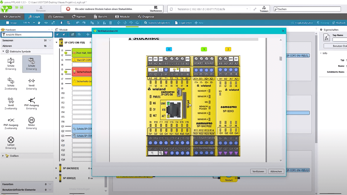 In combinazione con il nostro intuitivo software samos®PLAN 6, la verifica della macchina diventa un gioco da ragazzi. Ottenete una rapida panoramica con la matrice intelligente degli I/O e velocizzate il processo di verifica.