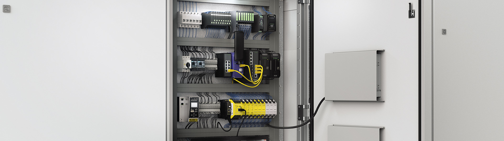 Grazie alla tecnologia di connessione push-in, i conduttori possono essere collegati direttamente senza attrezzi. Poco ingombrante, con un'elevata densità di imballaggio e il cablaggio del segnale su una larghezza di costruzione di soli 3,5 mm.